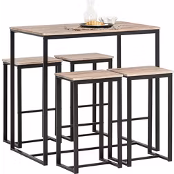 Materiaali: Rauta, MDF, Väri: Musta, Luonnonväri, Ominaisuudet: Jalkatuki, Tuolien lukumäärä: 4