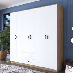 Vaatekaappi Linento Furniture BA111-2324, 210x210cm, valkoinen/ruskea