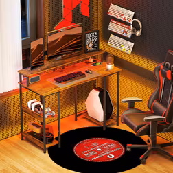HOMCOM 47" Reversible Computer Desk with Power Outlets and LED Lights, Home Office Desk with Monitor Stand